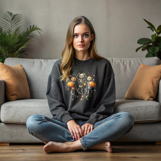 Skeleton Halloween Sweatshirt with Pumpkin head