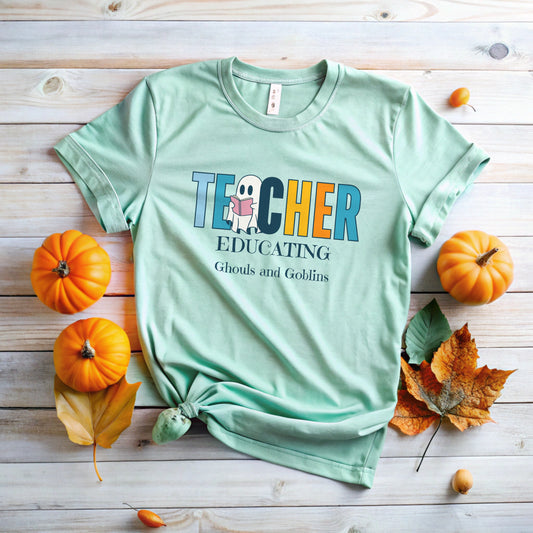 Educating Ghouls and Goblins T-Shirt for Teacher | Spooky Fun Halloween Teacher Tee