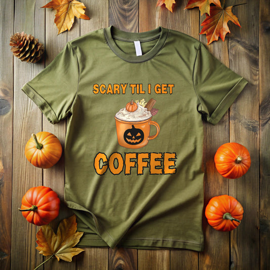 Scary Coffee Mug T-Shirt | Scary Til I Get Coffee