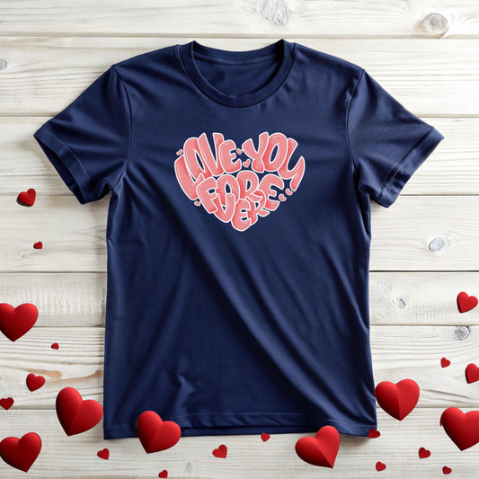 Heart Pattern Unisex Tee with 'Love You Forever' Slogan