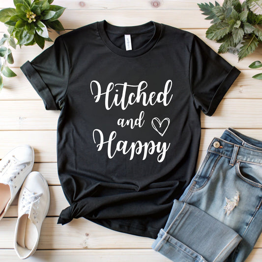 Hitched and Happy T-Shirt - Fun Honeymoon Wear